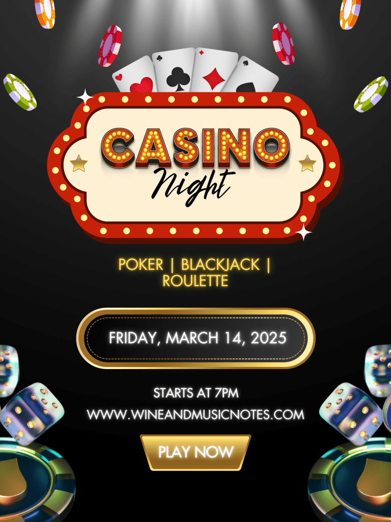 There’s a first time for everything, and this will be NOTES’s first time doing a casino/poker night. Bring some cash and coins for bets with other players! Or just play for fun at your own table! There will be Roulette, Texas Hold’em and Blackjack. If I can get my hands on a slot machine…