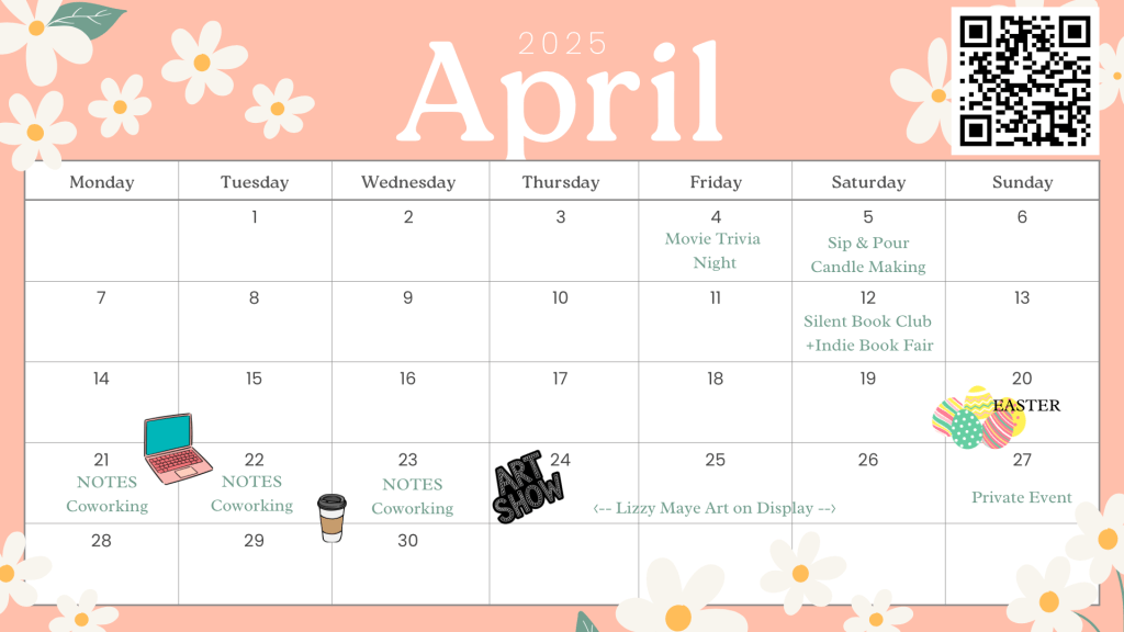 I hope y’all are enjoying your Easter weekend with family and friends. Check out what’s happening at NOTES coming up this week and future events.